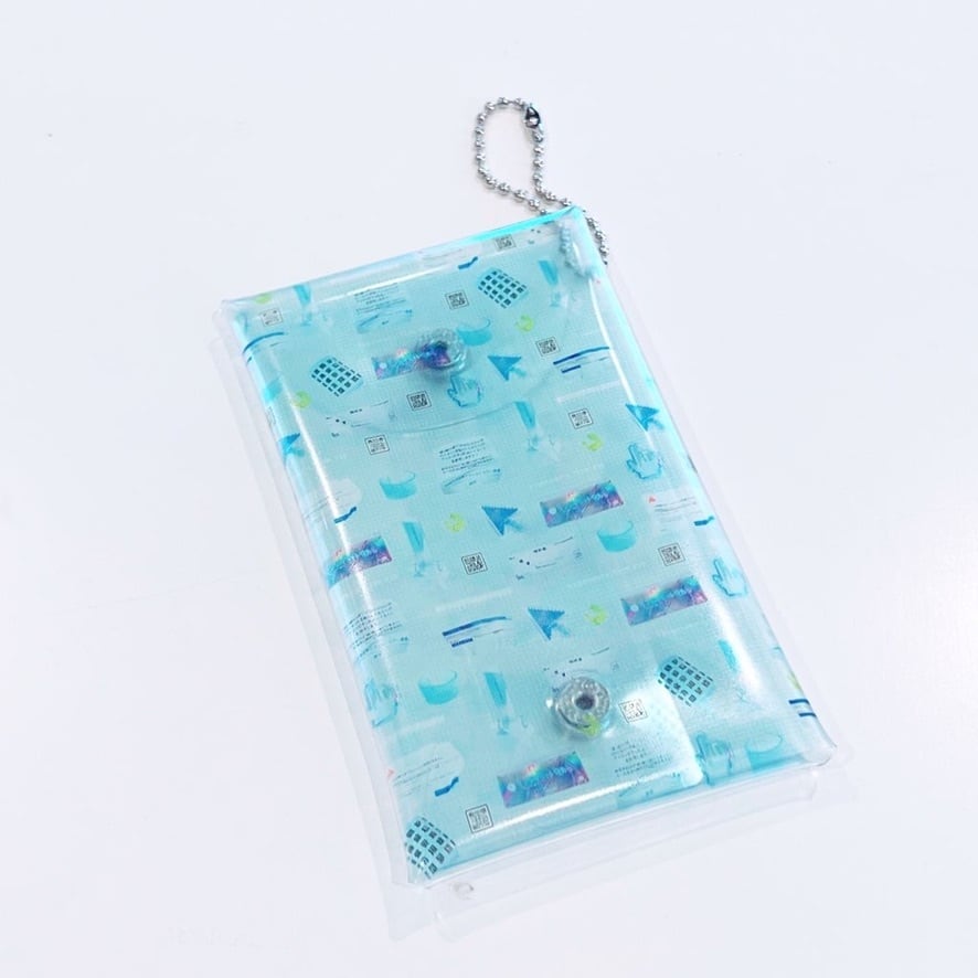 透明PVCケースに、南村杞憂作品をモチーフに使用したパターンをプリントしています。