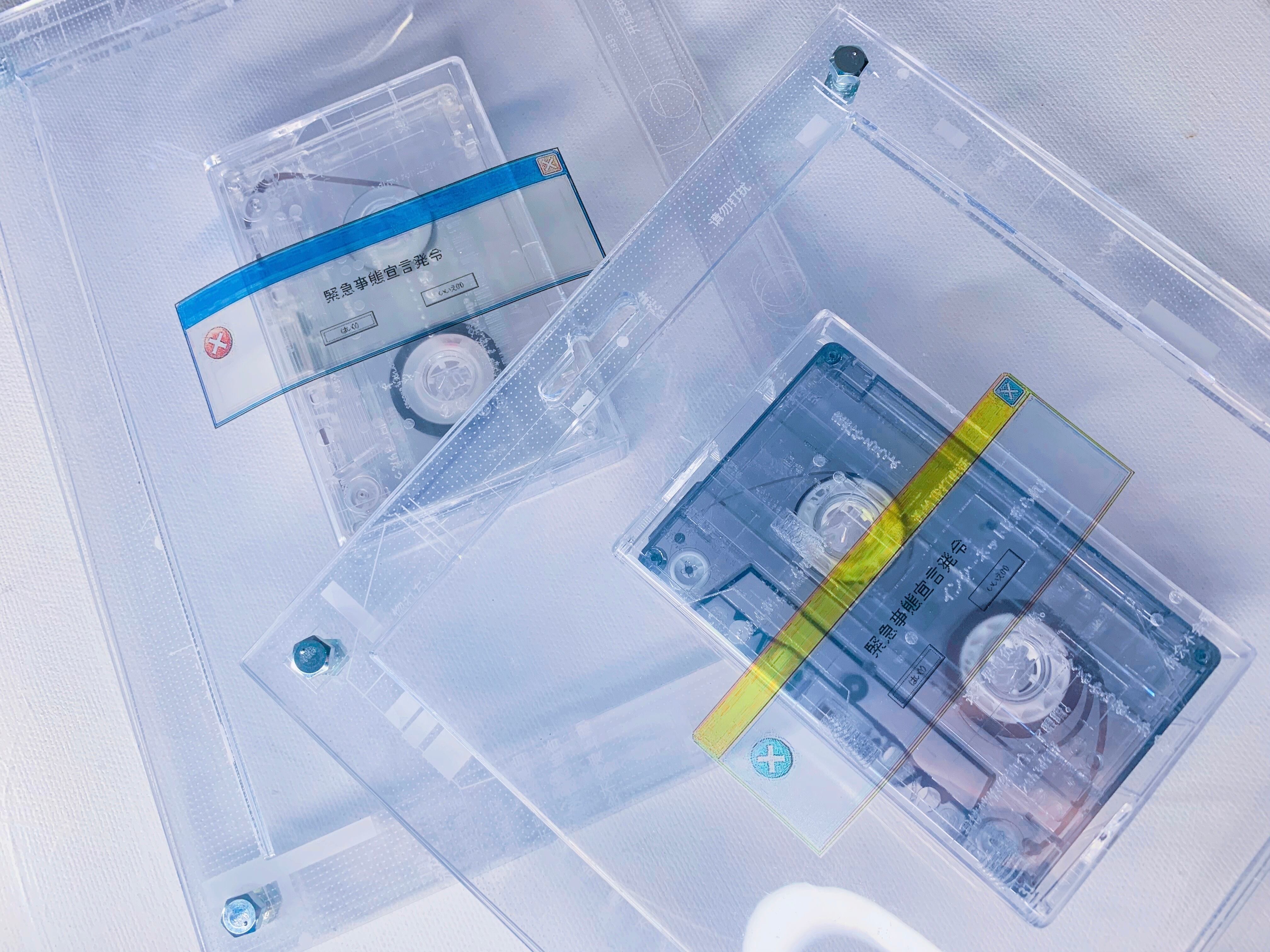 素材:アクリル材、カセットテープ、塩ビシート、UVプリント