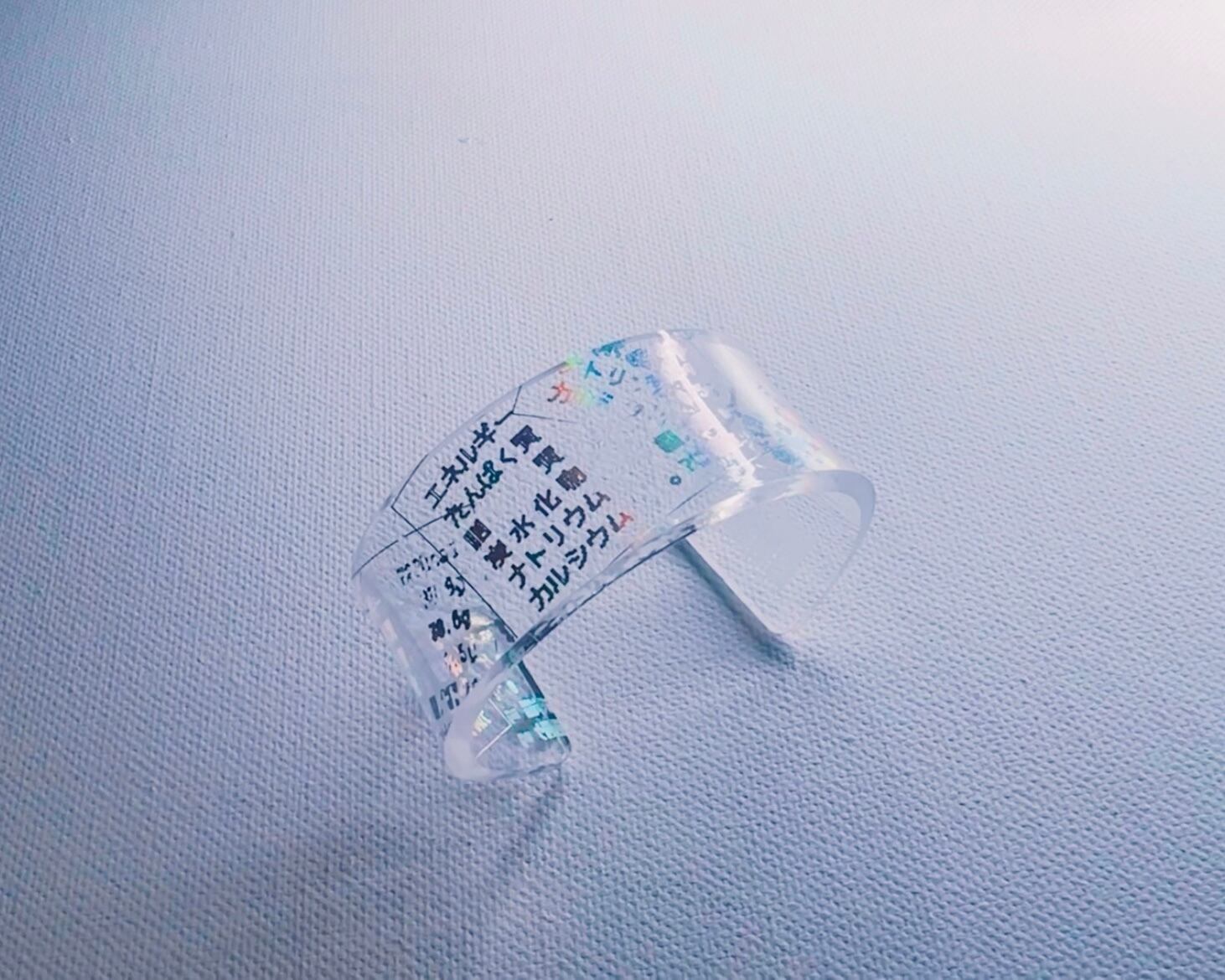 ランダムに成分表示が箔押しされたバングル